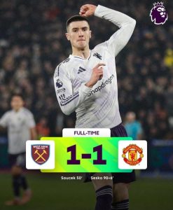 Benjamin Sesko ti ikọ̀ Manchester United dáa padà nígbà ti idije fẹ parí ní ayò bá yọrí sí ọkan sì oókan (1-1)  láti pa ikọ̀ West Ham United to wà ni ipò kejidinlogun lórí tábìlì lẹ́nu mọ́.